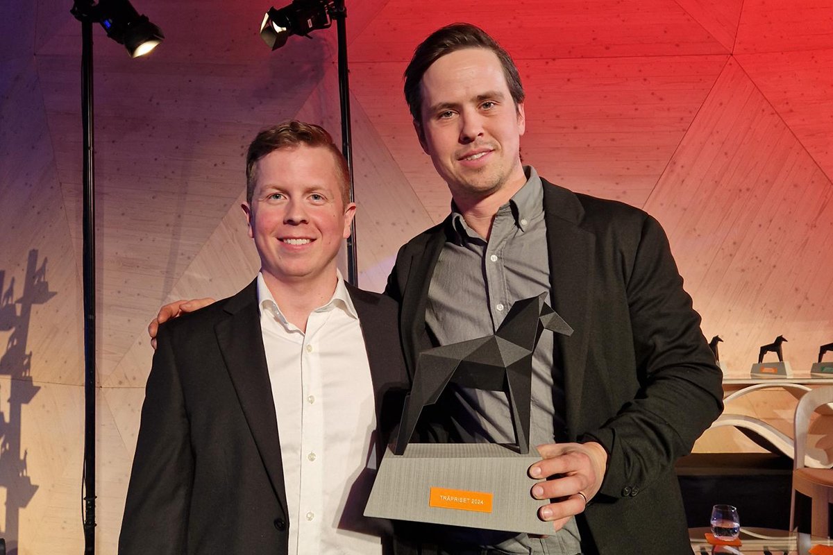 – Jag är stolt och oerhört glad! Det här är det absolut häftigaste träprojekt som någonsin gjorts i Sverige, kanske också det mest komplexa och komplicerade, säger Gustav Essebro, som varit med och beräknat träkonstruktionen. Priset är trähusens motsvarighet till OS.
